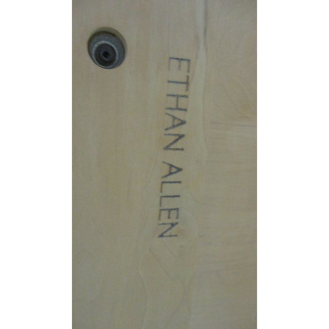 Great shape minor wear. Ethan Allen made great quality maple furniture for years out of their New England workshops. Table width is 38 18.